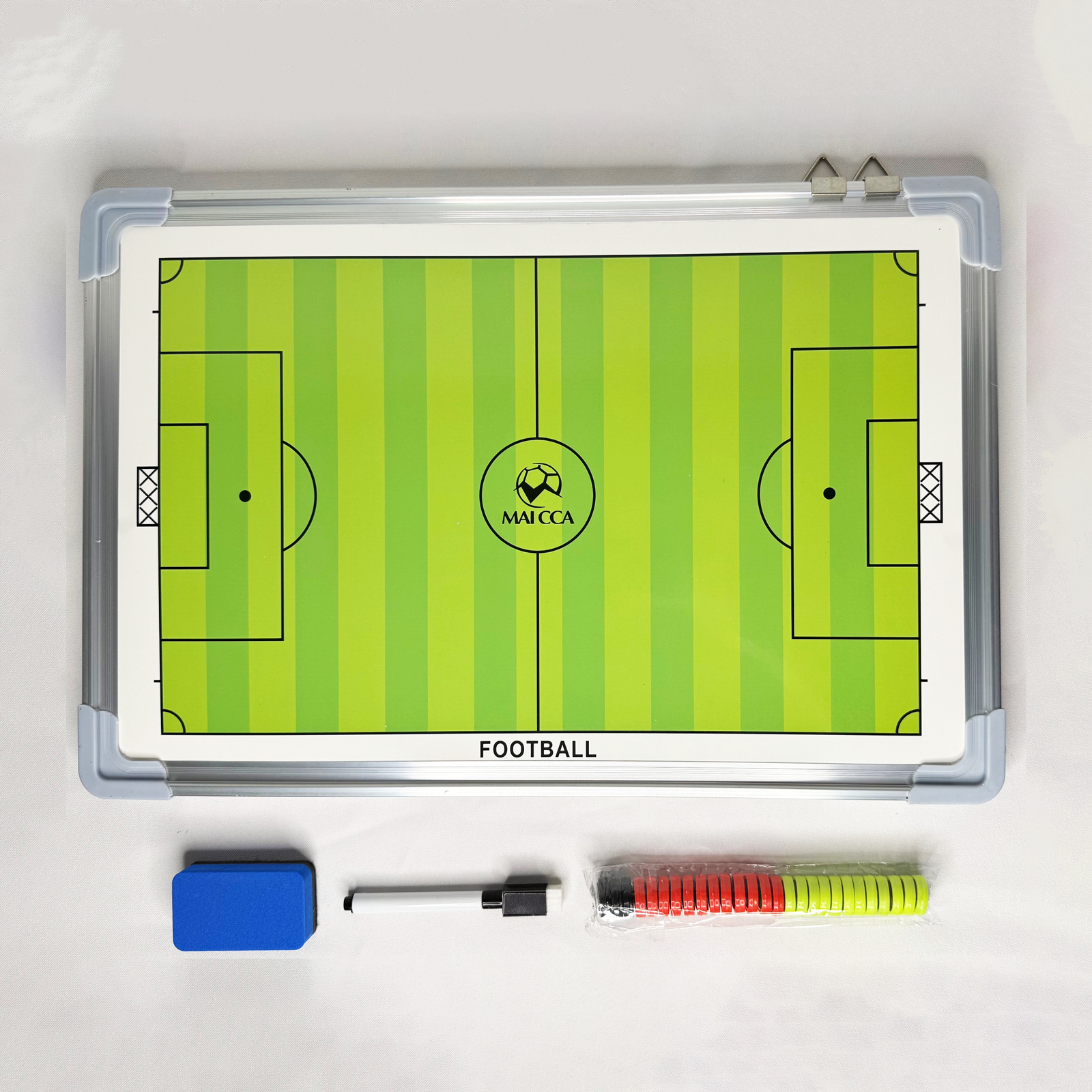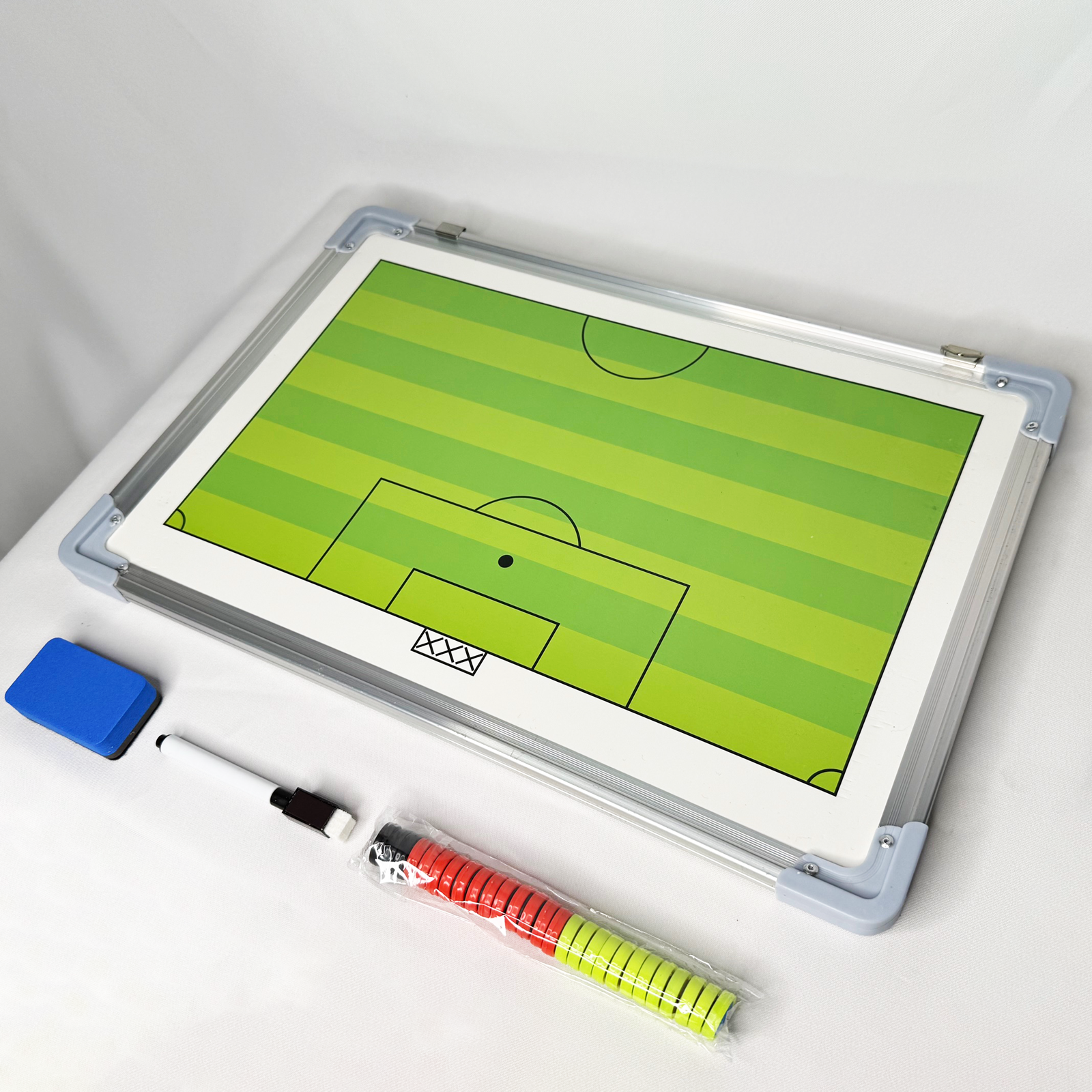 The Aluminum Coaches Board is a must-have tool for any sports team. With its durable aluminum construction, you can count on it to withstand even the toughest games. Its dry erase surface and magnetic positional markers make it easy to strategize and adjust on the fly. Stay one step ahead of the competition with this essential coaching accessory.